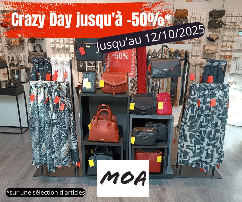 C’est le moment parfait pour craquer sans culpabiliser 🤩 ! Jusqu’au 12 octobre 2025, profitez des Crazy Day MOA avec des réductions exceptionnelles allant jusqu’à -50% sur une sélection d’articles signalés.